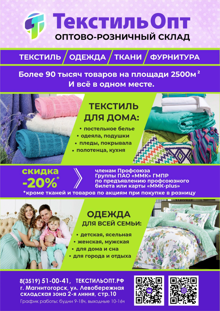 Профсоюзные скидки / 1. QR - КУПОНЫ / 2. СКИДКИ при предъявлении профсоюзного билета. КОНЦЕРТЫ\СПЕКТАКЛИ\ВЫСТАВКИ / 3. СКИДКИ при предъявлении профсоюзного билета. ЕДА / 4. СКИДКИ при предъявлении профсоюзного билета. МАГАЗИНЫ / 5. СКИДКИ при предъявлении профсоюзного билета. СПОРТ / 6. СКИДКИ при предъявлении профсоюзного билета. АВТОУСЛУГИ / 7.СКИДКИ при предъявлении профсоюзного билета. ОБРАЗОВАНИЕ / 8. СКИДКИ при предъявлении профсоюзного билета. КРАСОТА и ЗДОРОВЬЕ.. / 9. СКИДКИ при предъявлении профсоюзного билета.ПРОЧИЕ УСЛУГИ