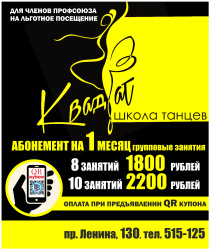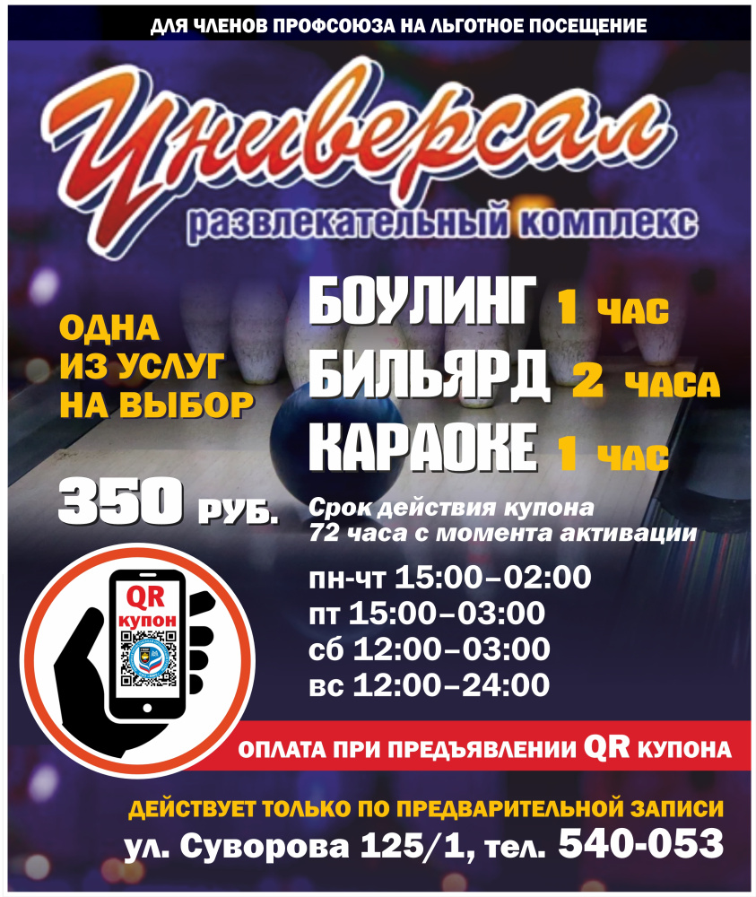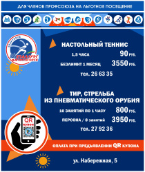 Профсоюзные скидки / 1. QR - КУПОНЫ / 2. СКИДКИ при предъявлении профсоюзного билета. КОНЦЕРТЫ\СПЕКТАКЛИ\ВЫСТАВКИ / 3. СКИДКИ при предъявлении профсоюзного билета. ЕДА / 4. СКИДКИ при предъявлении профсоюзного билета. МАГАЗИНЫ / 5. СКИДКИ при предъявлении профсоюзного билета. СПОРТ / 6. СКИДКИ при предъявлении профсоюзного билета. АВТОУСЛУГИ / 7.СКИДКИ при предъявлении профсоюзного билета. ОБРАЗОВАНИЕ / 8. СКИДКИ при предъявлении профсоюзного билета. КРАСОТА и ЗДОРОВЬЕ.. / 9. СКИДКИ при предъявлении профсоюзного билета.ПРОЧИЕ УСЛУГИ